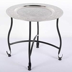 Casa Moro Orientalischer Teetisch Safi D40 | Beistelltisch mit Silbertablett & klappbarem Gestell in schwarz | Handmade…