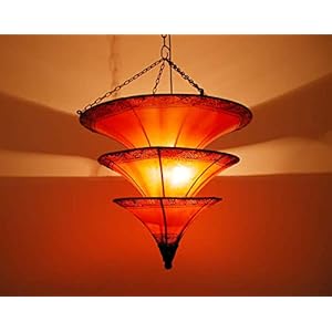 Orientalische Lampe marokkanische Hängelampe Rashida Orange | H 65 x 47 cm Leder-Lampe Kunsthandwerk aus Marrakesch…