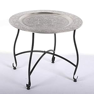 Casa Moro Orientalischer Teetisch Safi D50 cm | Beistelltisch mit Silbertablett & klappbarem Gestell in schwarz…