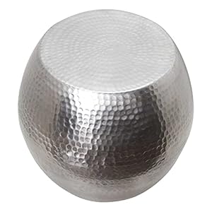 Casa Moro Orientalischer Hocker Beistelltisch Mohan Silber Ø 45cm Höhe 41cm mit Hammerschlag Optik aus Aluminium…
