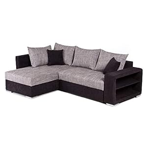 Collection AB Houston Polsterecke, Ecksofa, Schlafsofa mit Bettkasten, Mikrovelours-Struktur, schwarz / grau…