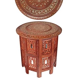 Marrakesch Orient & Mediterran Interior Marokkanischer Wohnzimmertisch Couchtisch Holz Alim 60cm | Vintage Tisch Messing…