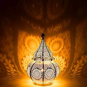Orientalische Messing Tischlampe Lampe Ishrat 34cm in Silber | Marokkanische Tischlampen klein Lampenschirm silberfarben…