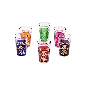 Orientalische verzierte Teegläser Set 6 Gläser Arab bunt Gold | Marokkanische Tee Gläser 6 Farben Deko orientalisch | 6…