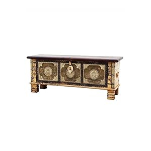 Orientalische Truhe Kiste aus Holz Cebrail – 116cm groß | Vintage Sitzbank mit Aufbewahrung für den Flur…