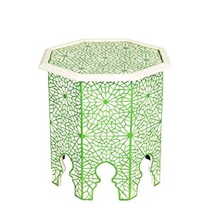 Marokkanischer Tisch Beistelltisch aus Holz Charka Grün ø 50cm rund | Orientalischer runder Hocker Blumenhocker klein…