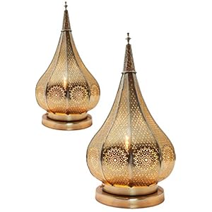 2er Set Orientalische Tischlampe Janka 30cm Lederlampe Quadratisch Lampe | Marokkanische kleine Tischlampen aus Metall…