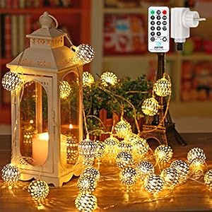 NEXVIN 30er LED Marokkanische Lichterkette Warmweiß, 9M Lichterkette Außen Innen Strombetrieben mit Fernbedienung…
