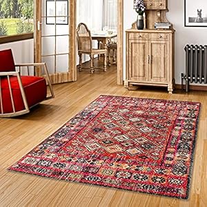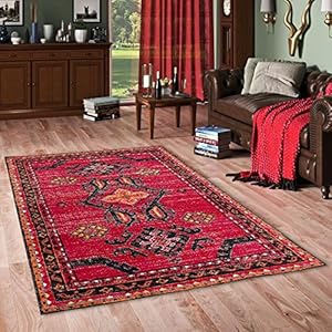 Pergamon Designer Teppich Vintage Zoe Orient Modern Rot Bordüre in 5 Größen