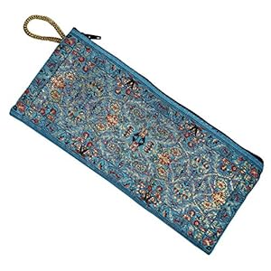 Simandra Geldbeutel Stoffbeutel Geldbörse mit Reißverschluss Handarbeit Bestickt Tasche Gross Farbe Hellblau