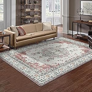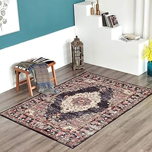 TALETA Mila Teppich Wohnzimmer,Blumenteppich Kurzflor,Wasserabweisender Orientalischer Küchenteppich für Vorzimmer…