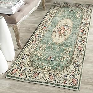 TALETA Greenish Teppich Wohnzimmer,Vintage Blumenteppich Kurzflor,Wasserabweisender Orientalischer Küchenteppich für…