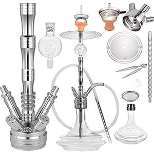 ADMY® 85 cm hoch Groß Shisha Edelstahl V2A Silber |Wasserpfeife Kaminkopf Komplettset Molassefänger mit 4 Anschlüssen…