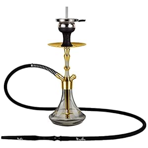 Aladin Shisha MVP 360 Gold Black, Wasserpfeife mit Edelstahl-Rauchsäule, Diffusor, Schlauch-Set, Kamin-Kopf