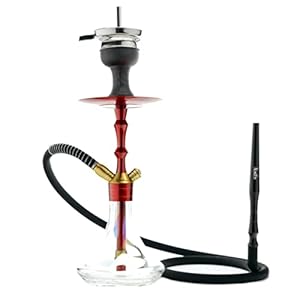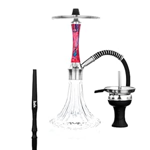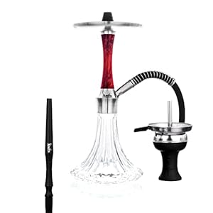 Aladin Shisha Epox 360 Pro Ruby Red, Wasserpfeife mit Edelstahl-Rauchsäule, Diffusor, Schlauch-Set, Kamin-Kopf