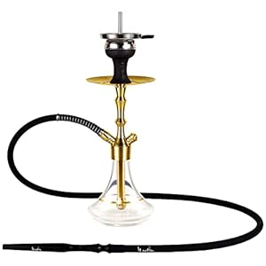 Aladin Shisha MVP 360 Gold Clear, Wasserpfeife mit Edelstahl-Rauchsäule, Diffusor, Schlauch-Set, Kamin-Kopf