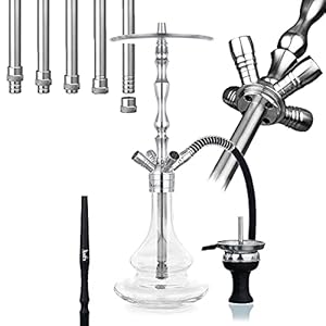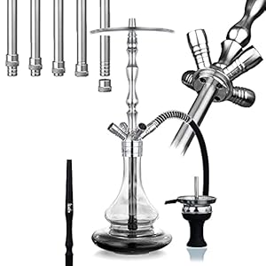 Aladin Shisha MVP 500 Clear, Wasserpfeife mit 4 Anschlüssen, Edelstahl-Rauchsäule, Diffusor, Schlauch-Set, Kamin-Kopf