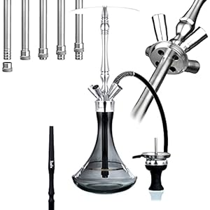 Aladin Shisha AluX 3-48 cm, Silver, Wasserpfeife mit Klick, Closed Chamber, Kaminkopf-Set, Silikonschlauch-Set
