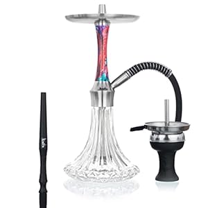 Aladin Shisha MVP 470 Flower, Wasserpfeife mit Edelstahl-Rauchsäule, Diffusor, Schlauch-Set, Kamin-Kopf