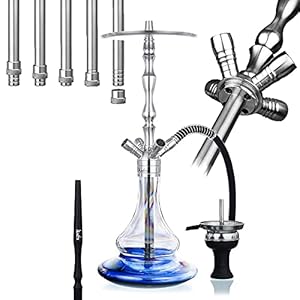 Aladin Shisha MVP 500 Blue Fade, Wasserpfeife mit 4 Anschlüssen, Edelstahl-Rauchsäule, Diffusor, Schlauch-Set, Kamin…