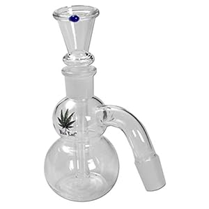 Black Leaf Bong-Zubehör: Vorkühler, Aschefänger | 153 mm, 2 x NS 14 (14,5 mm) | Glas, klar | mit aufgedrucktem Blatt…
