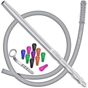 DILAW® Shisha Silikonschlauch Set mit Alu Mundstück inkl. 10 x Hygienemundstücke + Schlauchhalter + Knickschutzfeder…