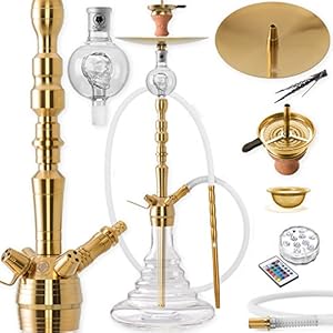 DILAW® Onyx Shisha Edelstahl Gold V2A 93cm Hookah Big Size + LED Licht | Wasserpfeife Kaminkopf Komplettset…