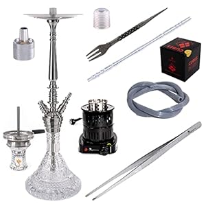 Dschinni Roxx Silver Edelstahl Shisha Vorkühler Set mit Blow Off I Shisha mit Kristallbowl I Edelstahl-Hybrid I extrem…