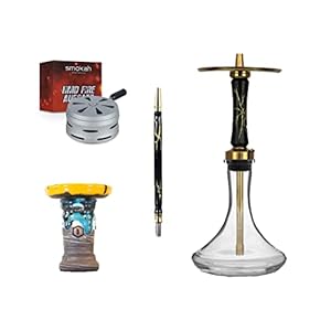 Generisch Hawk Hookah Pro Gold Black | Edelstahl Shisha mit Holz Sleeve | Teller Blow-Off | inkl. Kolos Phunnnel und Alu…