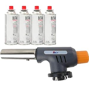 NS-100 Piezo Bunsenbrenner Flammbiergerät Flammbierer Gasbrenner MSF-1 Aufsatz (Gasbrenner + 4 Gaskartuschen)
