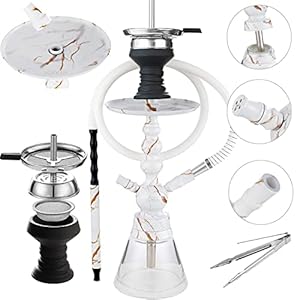 Shisha Set Komplett Marmorierung Weiß mit Schlauch Bowl Kaminaufsatz Kopf Sieb Anschlüsse Mundstück Zange Zubehör…