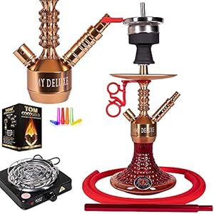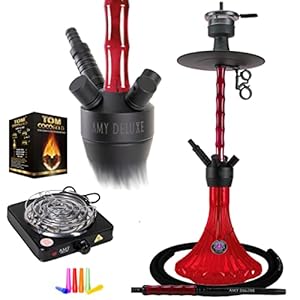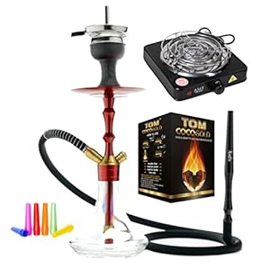Amy Deluxe Little Zuri, 40 cm, Shisha-Set, Geschenk-Set, Bundle mit TOM Gold Naturkohle & 1000w Kohleanzünder, Farbe:Rot…