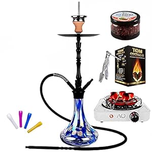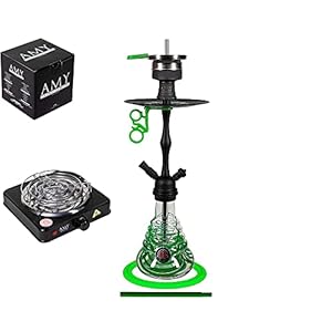 Amy Deluxe 123.01 Alu Dervish – 74 cm, Shisha-Set, Geschenk-Set, Bundle mit TOM Gold Naturkohle & 1000w Kohleanzünder…