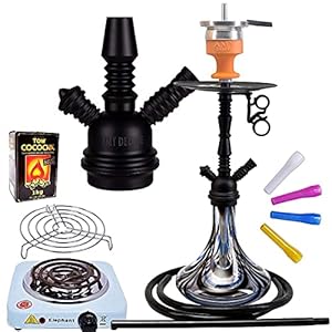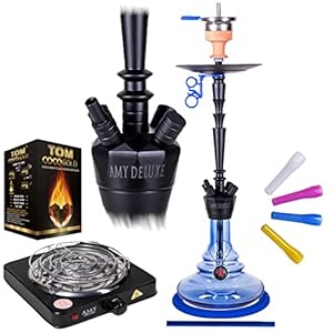 Amy 4-Stars 410D, 54cm mit Silikonschlauch-Set und Kamin-Kopf, Shisha-Set, Geschenk-Set, Bundle mit TOM Gold Naturkohle…