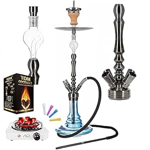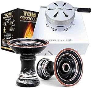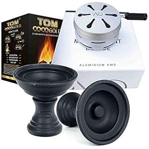 Aladin Epox 360 Shisha-Set, 9 Blow-Offs, Edelstahl, Diffusor, Closed Chamber, Bundle mit TOM Gold Naturkohle & 1000w…