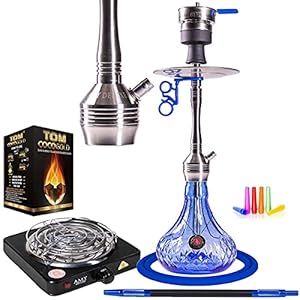 Amy Deluxe Shisha 073.01 Alu Sierra, Alu-Wasserpfeife, Shisha-Set, Geschenk-Set, Bundle mit TOM Gold Naturkohle & 1000w…