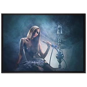 Pixxprint Frau mit Shisha Leinwandbild 60×40 cm im Bilderahmen/Wandbild/Schattenfugenrahmen/Kein Poster