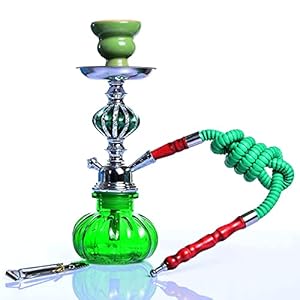QZH Tragbares Shisha Set 11″ Mini Shisha Einzelschlauch mit Glasvase, Keramikschale und Kohlezange,Grün