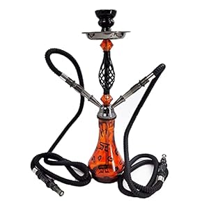 QZH Shisha-Set mit 2 Schläuchen 19″ Tragbares Komplett-Set mit Glasvasenbasis, Shisha-Keramikschale, Holzkohlehalter, Pfeife, Kohlezange (Orange)
