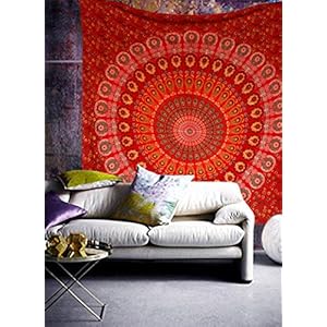 raajsee Indisch Wandteppich Mandala Rot, Boho WandDeko, Aesthetic Room Décor, Wandtuch Mandala, Wandbehang Queen 82×92…