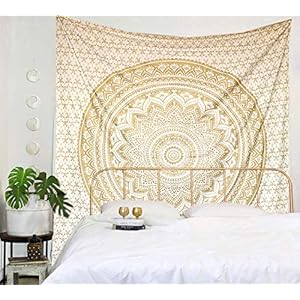 raajsee Indisch Wandteppich Mandala Weißes Gold Boho WandDeko, Aesthetic Room Décor, Wandtuch Mandala, Wandbehang…