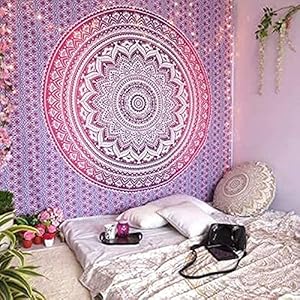 raajsee Indisch Psychedelic Mandala Wandteppich Rosa Ombre,Boho Wandtuch Hippie,Indien Wandbehang Tuch,Groß Baumwolle…