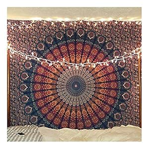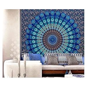 raajsee Indisch Wandteppich Mandala Golden Blau, Boho WandDeko, Aesthetic Room Décor, Wandtuch Mandala, Wandbehang Queen…