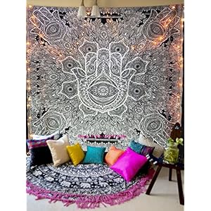 Raajsee Exklusive Grau Hamsa Hand Wanteppich für Viel Glück, indischen schwarz und weiß Mandala Wand Kunst Wandbehang…