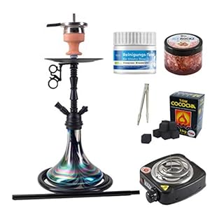 Shisha-Set mit Shisha Amy Deluxe I Need You klick II, Kohleanzünder, Naturkohle, Kaminkopf, Dampfsteine (Rainbow Schwarz…