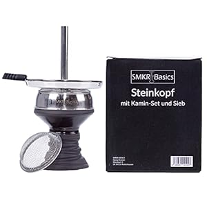 SMKR Basics Shisha Steinkopf Set | Stein Kopf Set Shisha Kamin Sieb und Adapter Topf Wasserpfeife Zubehör (Schwarz)