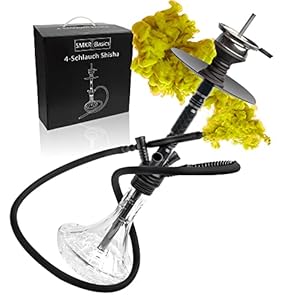 Black Series Shisha 4 Anschlüsse Set (Diffusor, Kopf mit Sieb & Schnellverschluss) – Glas Bowl Alu Shisha 4 Schlauch…