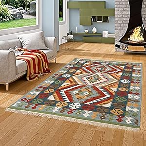 Klassischer Orientteppich mit Vintage-Effekt | sehr robust und strapazierfähig | 60 x 90 cm; Farbe: Grün | THEKO die…