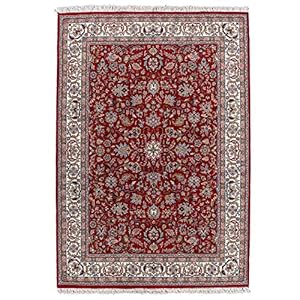 THEKO | Traditioneller Orientteppich aus 100% Schurwolle Perserteppich mit Isfahan Muster | handgeknüpft | Rot | 40x60cm