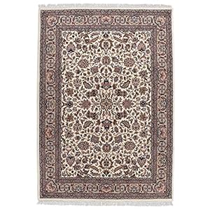 THEKO | Traditioneller Orientteppich aus 100% Schurwolle Perserteppich Isfahan Muster | handgeknüpft | Beige | 250x350cm